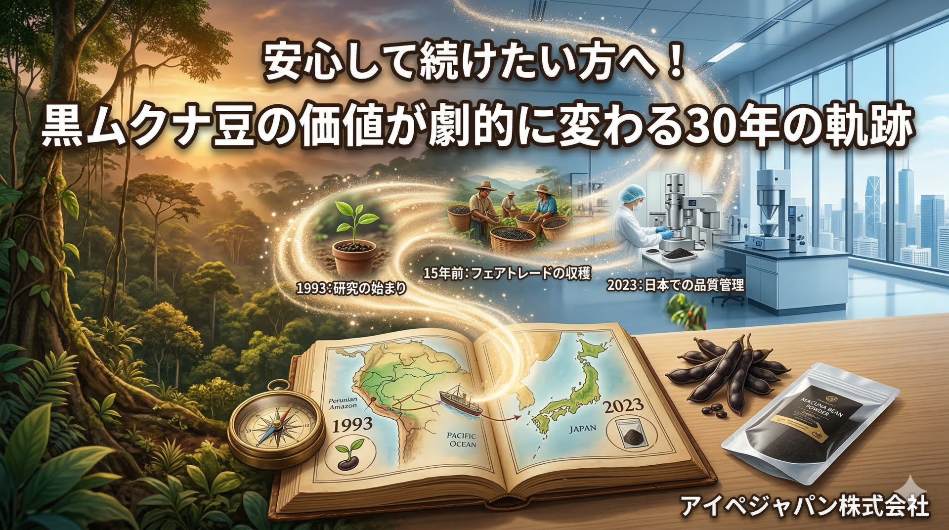 ペルー・アマゾンの農家と日本の絆、そして偶然の奇跡が生んだ、安心と信頼の黒ムクナ豆。毎日の生活に手軽に取り入れたい方には、使いやすい粉末タイプの「黒ムクナくんパウダー」を、よりアクティブな毎日をサポートしたい方には、こだわりの「黒ムクナくんアマゾンパワー5」を自信を持ってお勧めいたします。これらの製品をお求めの際や、ご不明な点がございましたら、ぜひお気軽にアイぺジャパン株式会社にご相談ください。皆様の健康習慣と、アマゾンへの支援の架け橋となるよう、真心を込めて対応させていただきます。